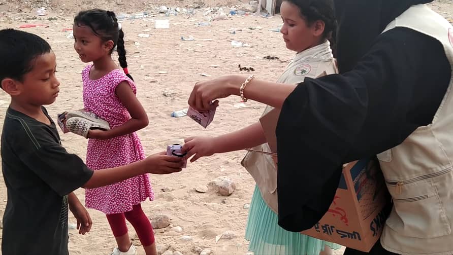 العيدية استهدفت 100 طفل وطفلة من الأطفال المنتشرين على طول كورنيش المكلا ،،