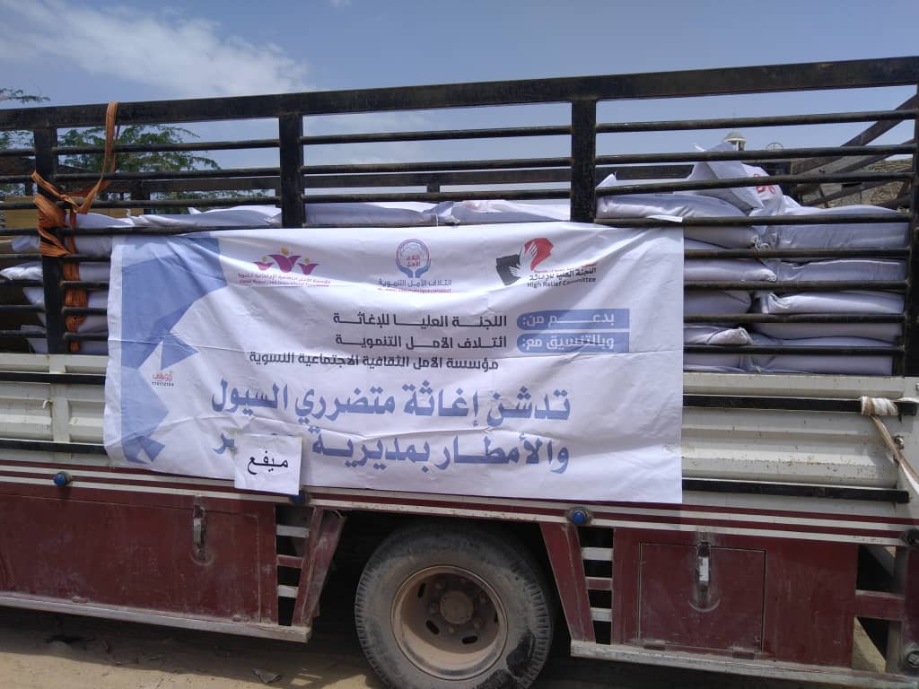 وتأتي هذه الحملة التي استفاد منها 250 أسرة من الأسر الفقيرة وأصحاب الدخل المحدود المتضررين من السيول والأمطار التي شهدتها حضرموت وتضررت منها المديريات الغربية، بدعم اللجنة العليا للإغاثة وبالتنسيق مع إئتلاف الأمل التنموية.