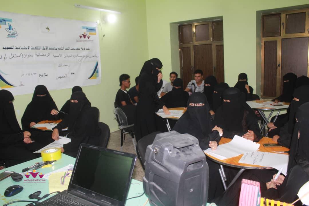 نظم فريق حضرموت الخير التابع لمؤسسة الأمل الثقافية الاجتماعية النسوية بالتعاون مع مؤسسة داؤود الجيلاني التنموية يوم أمس الخميس 23/ مايو/2019م حلقة نقاش بعنوان “استغل أواخر رمضانك و غير حياتك” وذلك بمقر مؤسسة الجيلاني بغيل باوزير .