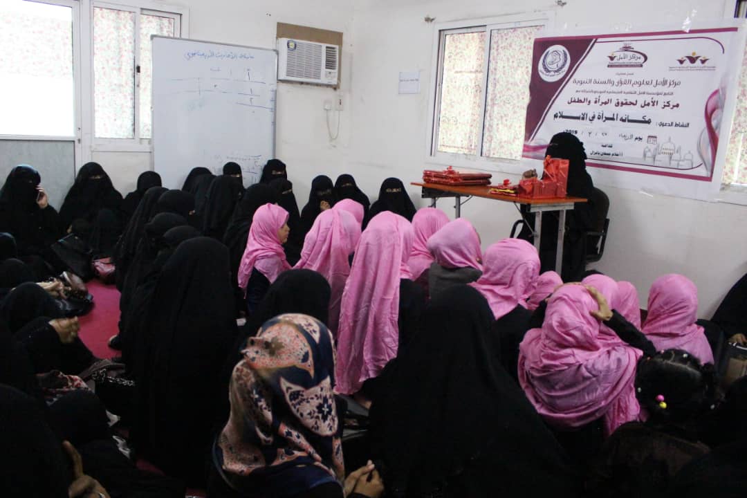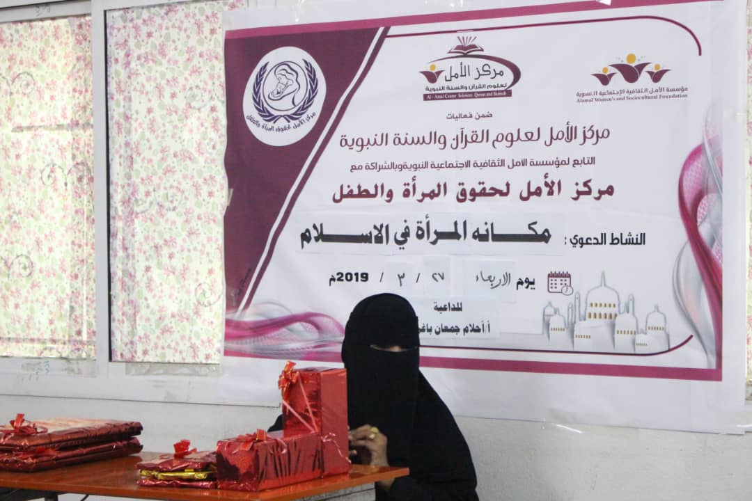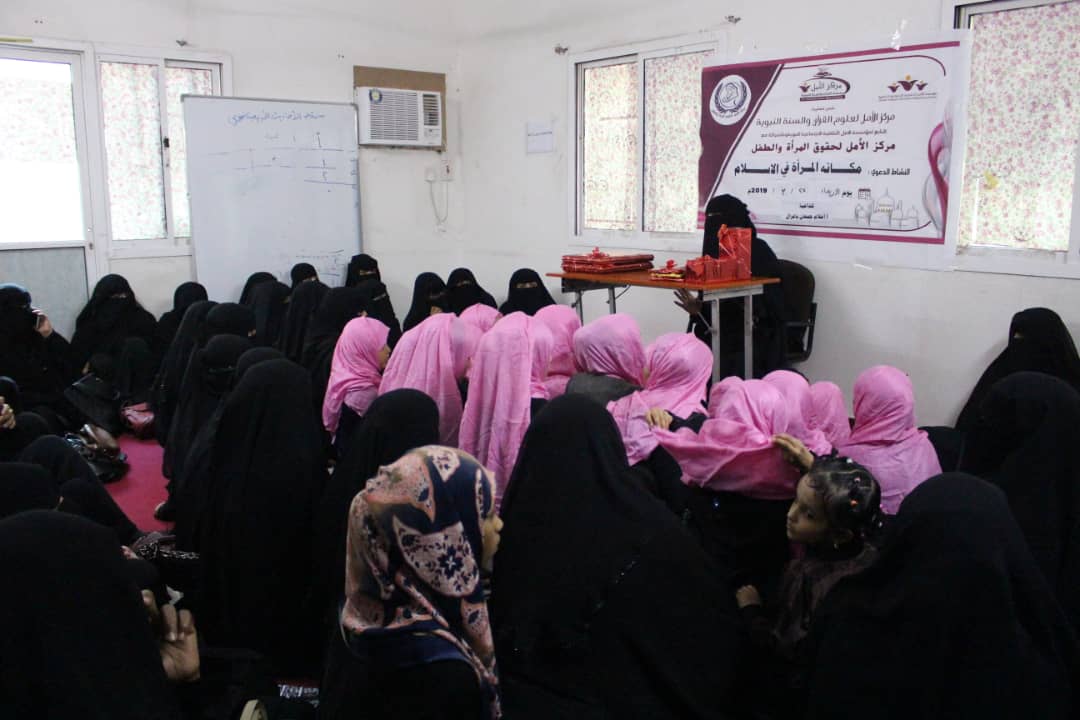 ضمن اهتمامات مركز الأمل لعلوم القرآن الكريم وبالشراكة مع بقية المراكز التابعة لمؤسسة الأمل الثقافية الاجتماعية النسوية نُظم مساء يوم الاربعاء الموافق 27/3/2019م محاضرة ثقافية بعنوان (مكانة المرأة في الإسلام ) في مقر المركز الرئيسي بمنطقة الشرج