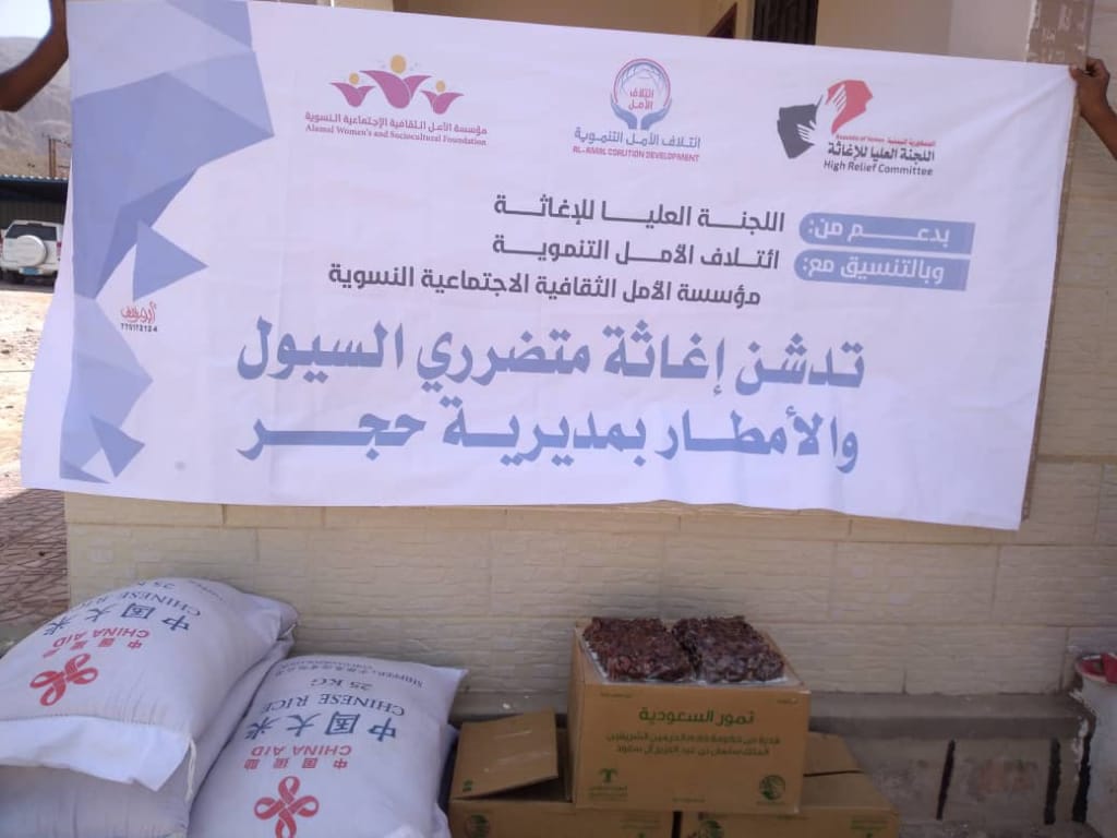 دشنت مؤسسة الأمل الثقافية الإجتماعية النسوية صباح اليوم حملة إغاثة متضرري السيول والأمطار بمديرية حجر، بدعم مع اللجنة العليا للإغاثة وبالتنسيق مع إئتلاف الأمل التنموية.