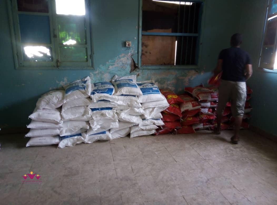 وتحتوي السلة الغذائية على كيس من الأرز و وكيس من سكر و وكيس من الدقيق وكرتون من الزيت .