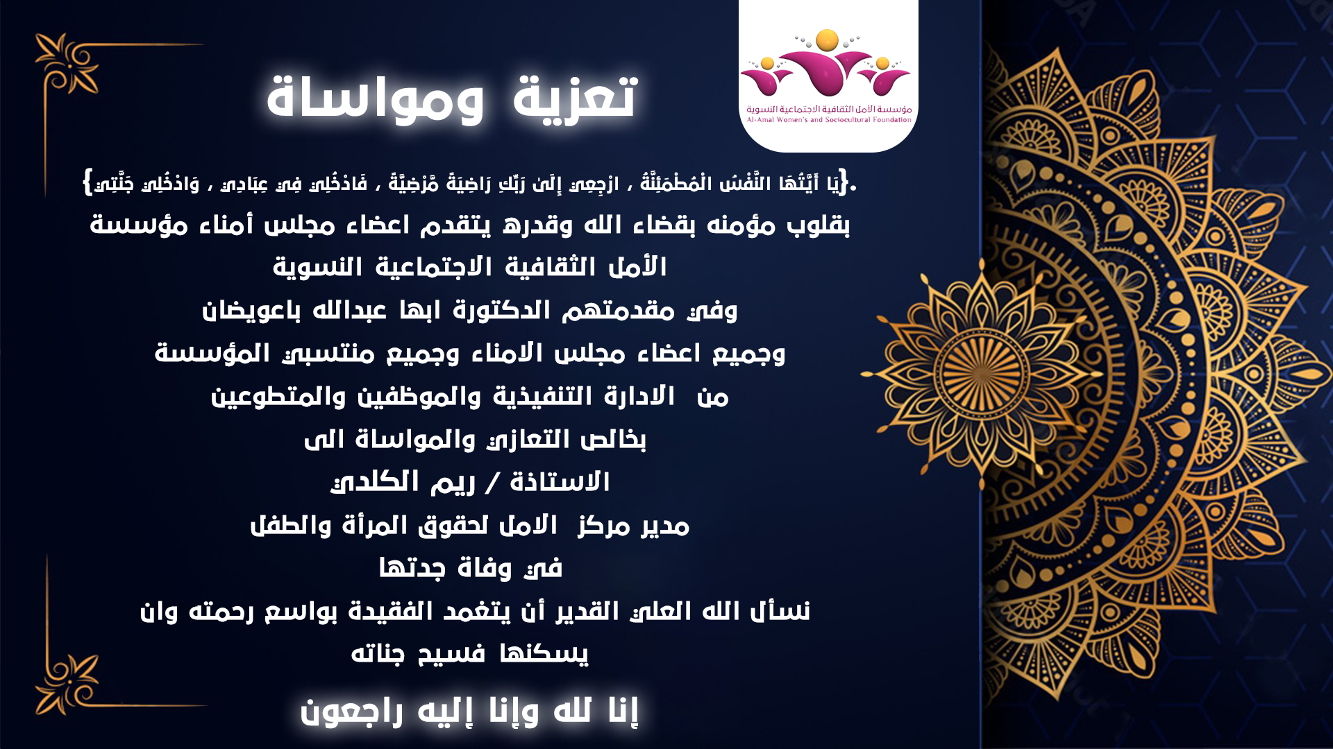 مؤسسة الأمل الثقافية الاجتماعية النسوية مؤسسة أهلية غير ربحية تعمل على إلهام المرأة اليمنية عموما و الحضرمية خصوصا لتكون قوية , ذكية و جريئة من خلال الخدمات المباشرة و المناصرة. حيث تسعى إلى تمكين المرأة في المشاركة الفاعلة في التنمية الثقافية و الاجتماعية و الاقتصادية , المساهمة في القضاء على جميع أشكال العنف والاستغلال ضد المرأة، وإحقاق المساواة الفعلية بين الجنسين, وتمكينها من الحصول على الرعاية والحماية الصحية……