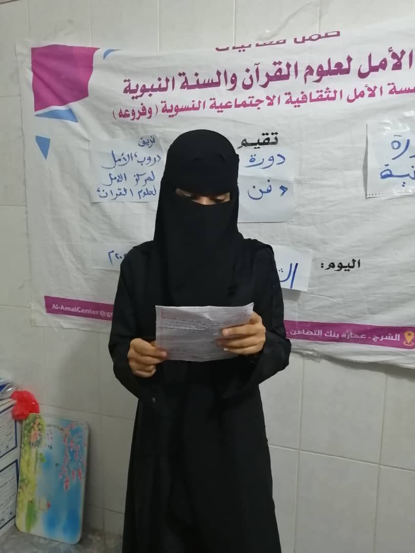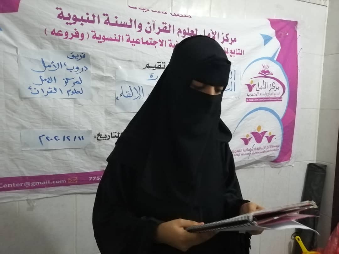 اقام مركز الامل لعلوم القران والسنة النبوية التابع لمؤسسة الامل الثقافية الاجتماعية النسوية الجزء الثاني والتطبيقي من دورة فن الالقاء لعضوات فريق دروب الأمل وذلك مساء يوم الاربعاء الموافق ١٢/٢/٢٠٢٠م بالمقر الرئيسي بمركز الأمل بالشرج