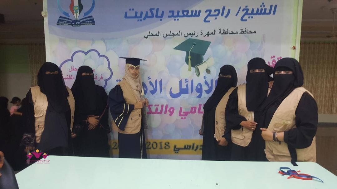 شارك فريق آيادي الخير التابع لمؤسسة الأمل الثقافية الاجتماعية النسوية بالغيظة مدراس الاوائل الأهلية بتنظيم حفلها لتكريم اوئل الطلاب للعام الدراسي ٢٠١٨-٢٠١٩م التي إقامته عصر اليوم الأربعاء ١/٥/٢٠١٩ بصالة الباني بالجحي.. حيث تم تكريم أوائل الطلاب من المتفوقين دراسيا بعدد من شهادات الشكر والتقدير تزامنا مع. اليوم العالمي للعمال الذي يصادف اليوم الأول من مايو من كل عام.