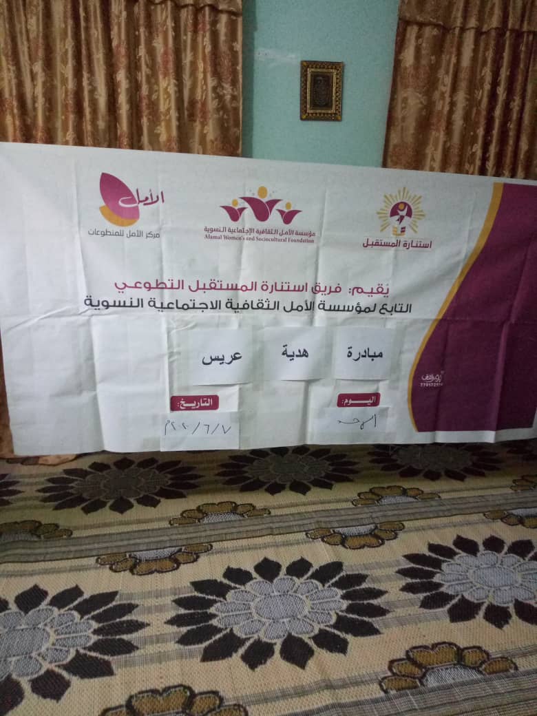قدم فريق إستنارة المستقبل التطوعي بريده الجوهيين بمديريه غيل بن يمينالتابع لمؤسسة الأمل الثقافية الاجتماعية النسوية يوم أمس الأول الأحد مبادرة هدية عريس لأحد العرسان في منطقة غيل بايمين بدعم من المؤسسة ،،