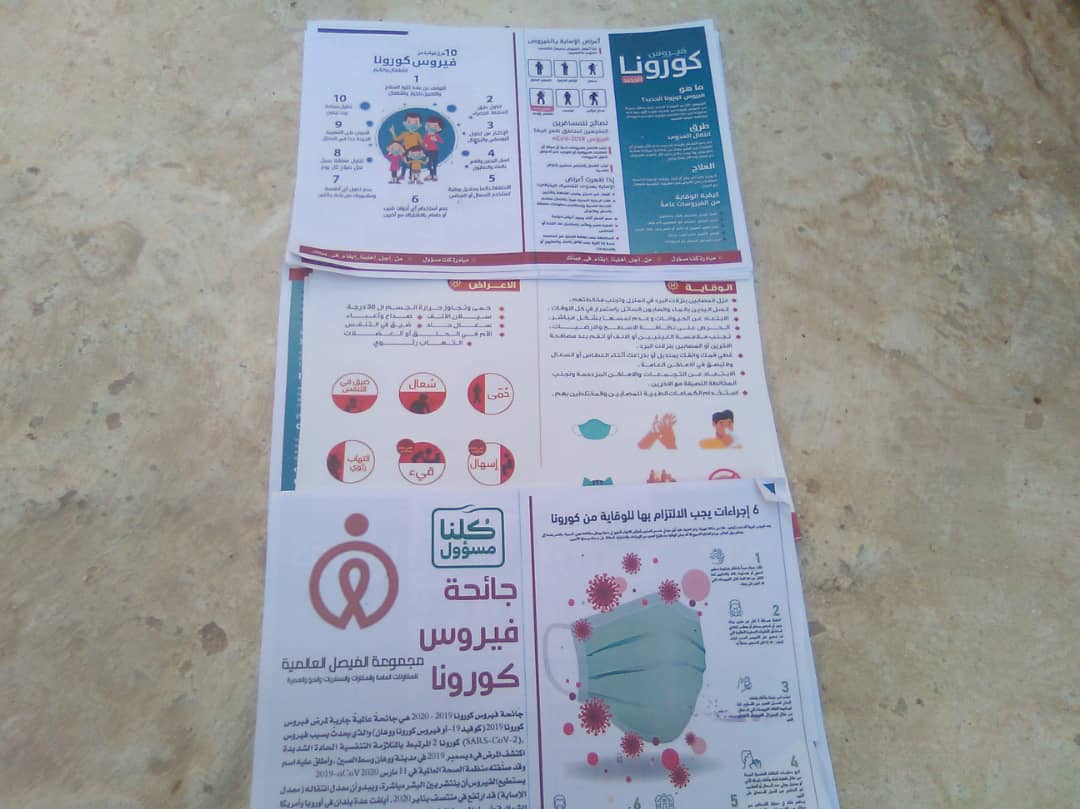 كما تخلل عملية التوعية توزيع عدد من البرشورات التوعوية ومواد تنظيف و معقمات.