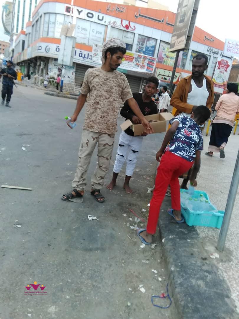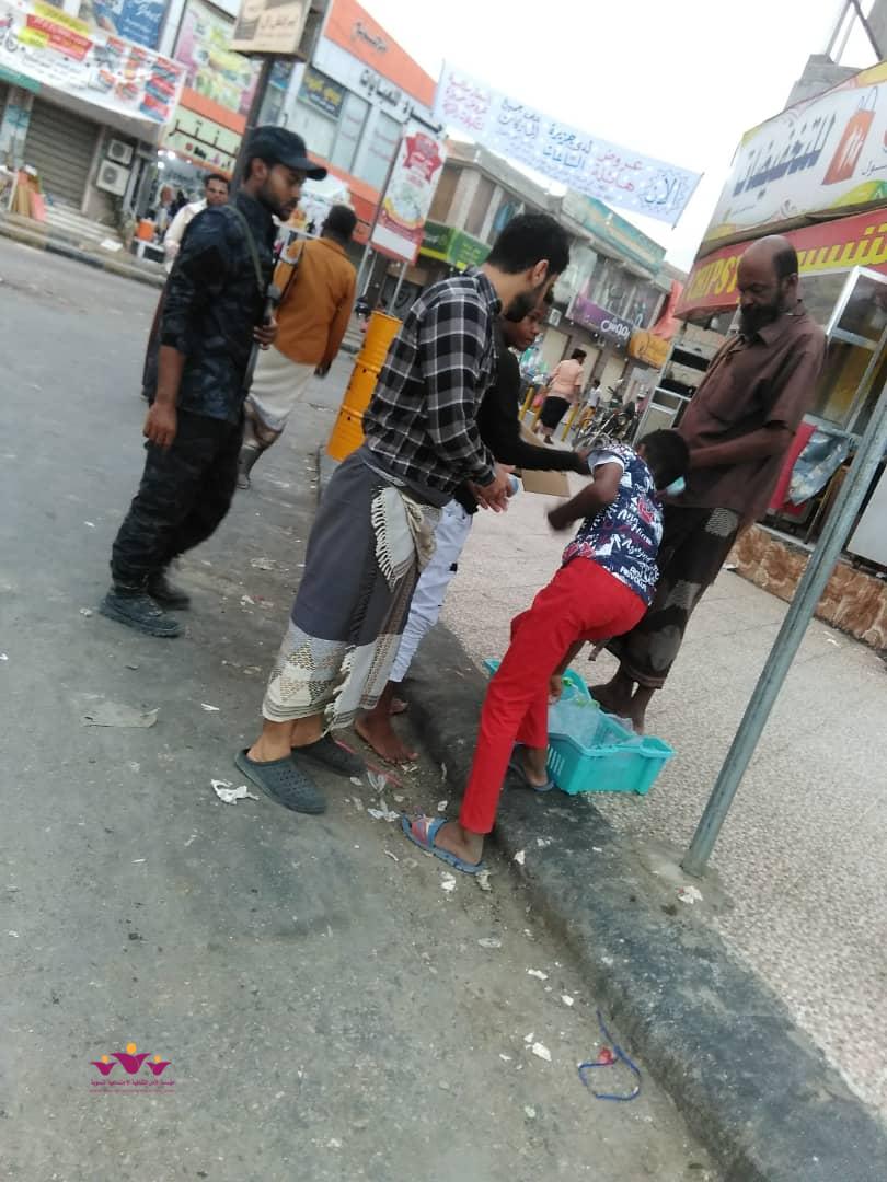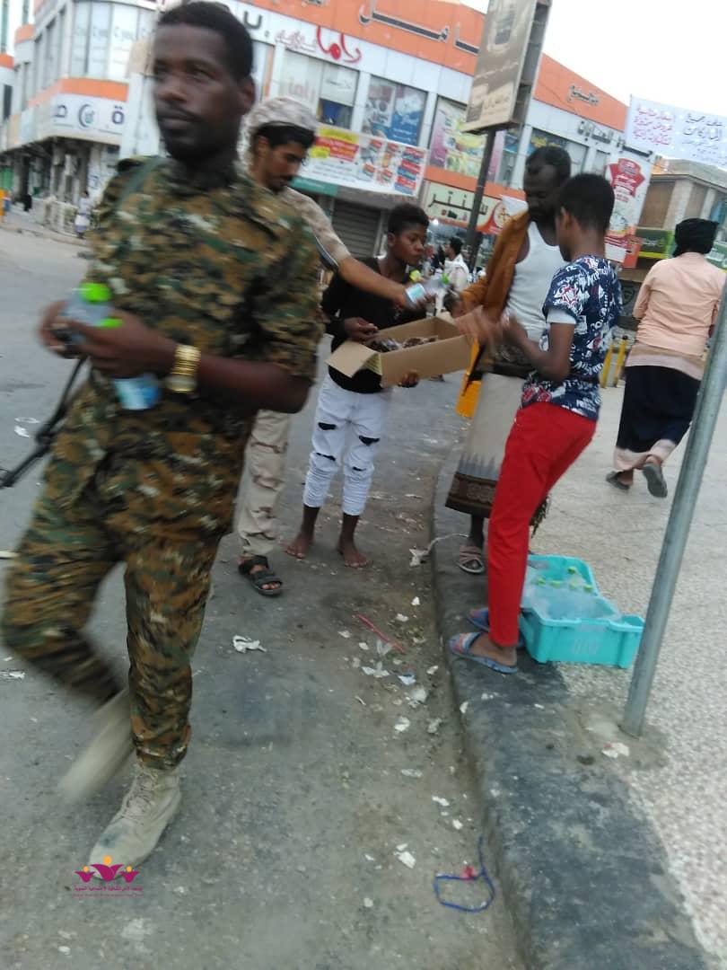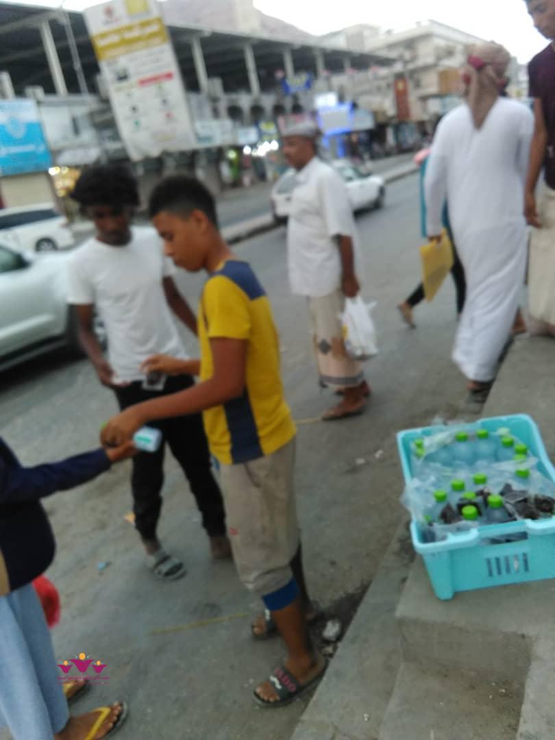 نفذ فريق رفقاء التطوعي بالمكلا التابع لمؤسسة الأمل الثقافية الاجتماعية النسوية الاثنين 6/5/2019 م حملة توزيع وجبات افطار صائم جاهزة (تمور+ماء ) على عدد من المارة الصائمين في عدد من شوارع وجولات أحياء منطقة الشرج بمدينة المكلا بدعم وتمويل من فاعل خير .