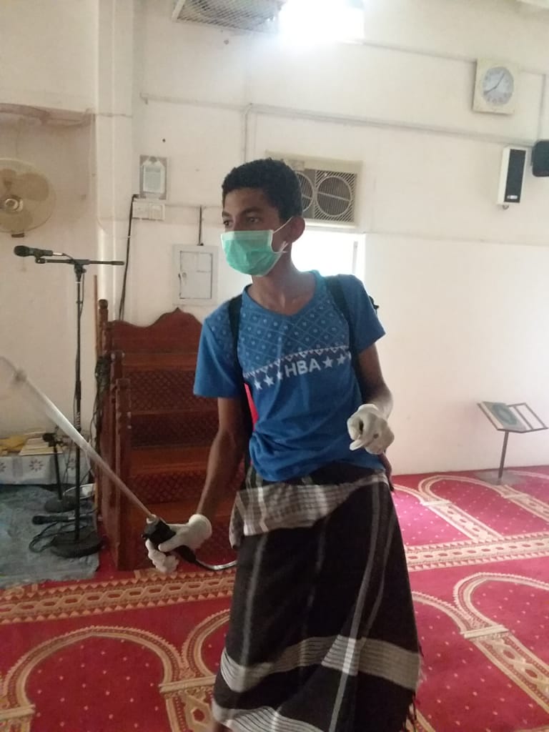 نفذ فريق شعلة أمل دوعن التابع لمؤسسة الأمل الثقافية الاجتماعية النسوية بالتنسيف مع مجلس شباب الخريبة يومي السبت والأحد الموافق 10/11 أبريل …حملة تعقيم المؤسسات ودور العبادة بمديرية دوعن تحت شعار “يد بيد للوقاية من فيروس كورونا ” المستجد كوفيد 19بتمويل من مؤسسة الأمل النسوية…