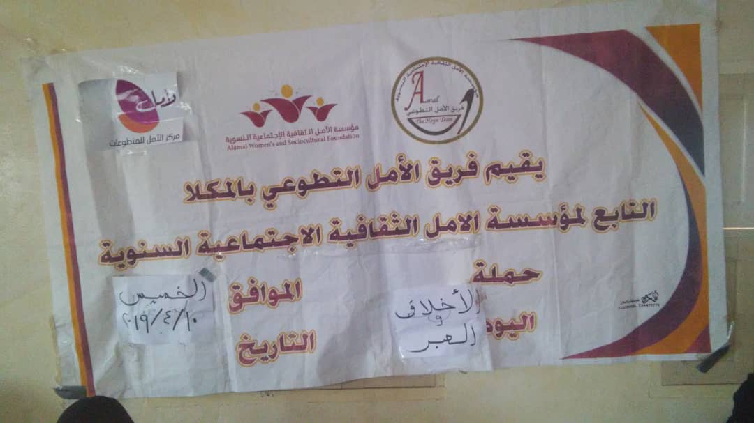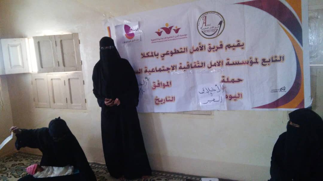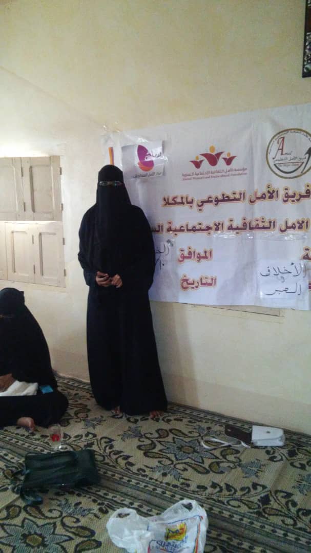 نظم فريق الأمل التطوعي بالمكلا التابع لمؤسسة الأمل الثقافية الاجتماعية النسوية محاضرة توعوية في منطقة والحرشيات بضواحي مدينة المكلا ..