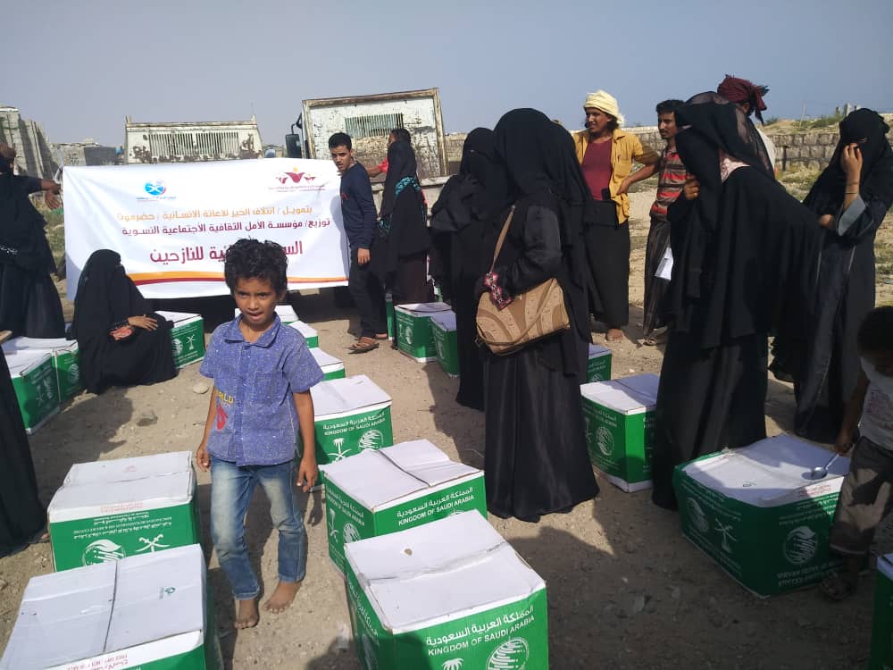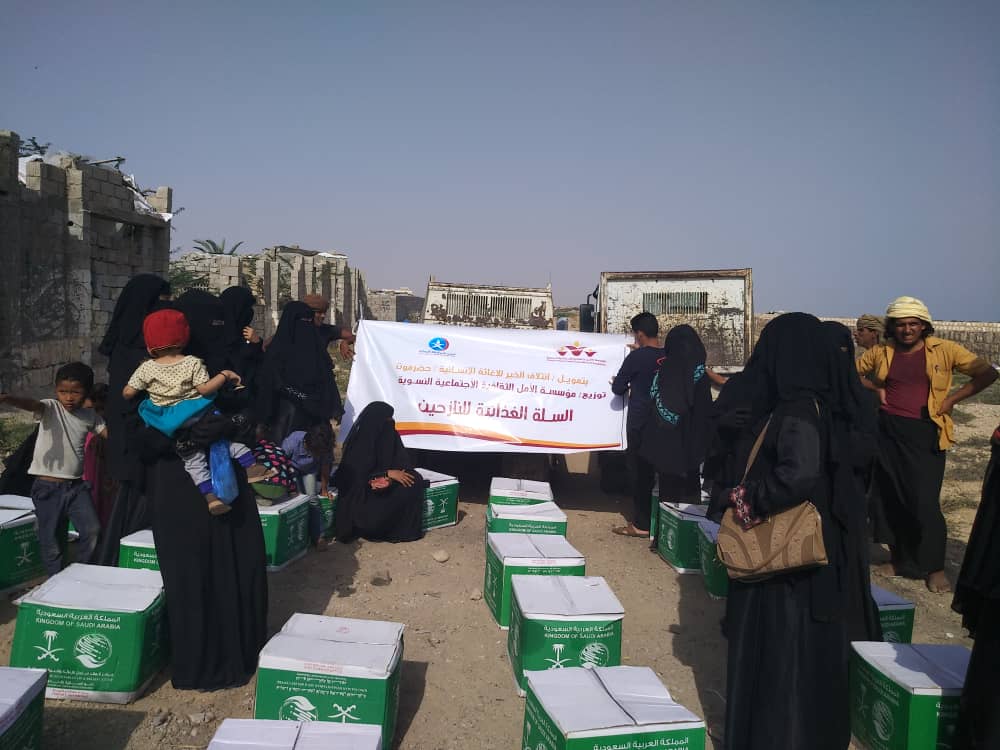 وزعت مؤسسة الأمل الثقافية الاجتماعية النسوية بحضرموت يوم أمس الخميس 200 سلة غذائية على العائلات النازحة من محافظة الحديدة الى محافظة حضرموت والتي تسكن في منطقة بويش بجانب معسكر الأمن المركزي بمدينة المكلا بدعم من مؤسسة إئتلاف الخير للإغاثة الإنسانية .