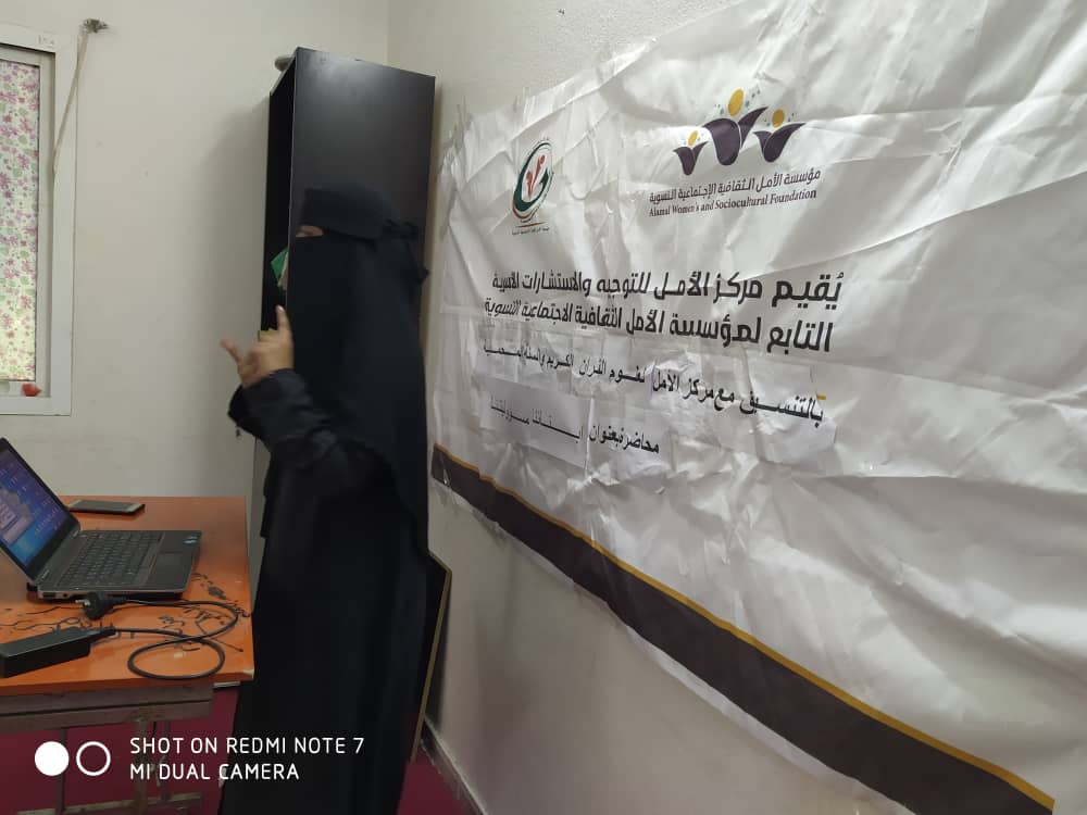 نظم مركز الأمل للتوجيه والإستشارات الاسرية التابع لمؤسسة الأمل الثقافية الاجتماعية النسوية يوم الأثنين الماضي 27/1/2020 محاضرة توعوية تحت عنوان “أبناؤنا مسؤوليتنا” بمركز الأمل لعلوم القرآن والسنة المحدية بمنطقة الشرج مدينة المكلا..