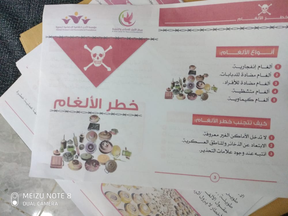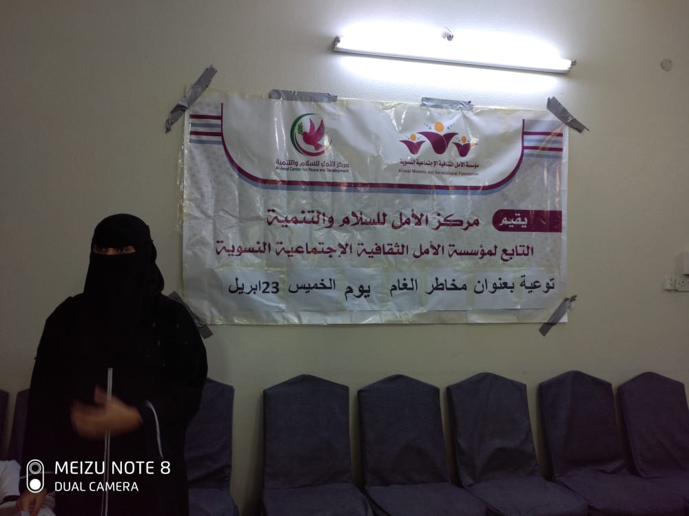 نظم مركز الأمل للسلام والتنمية التابع لمؤسسة الأمل الثقافية الاجتماعية النسوية الخميس23إبريل 2020م محاضرة توعوية عن “مخاطر الألغام”