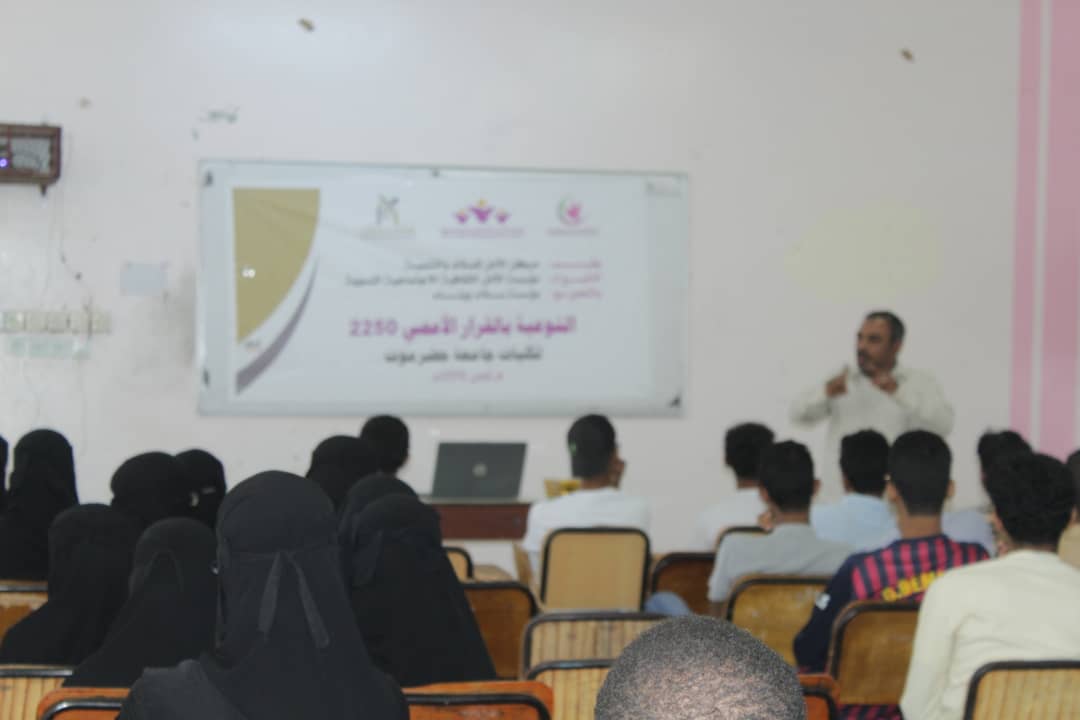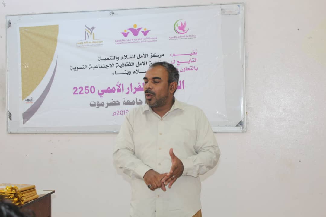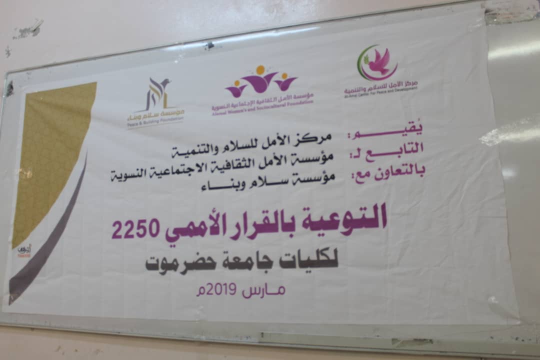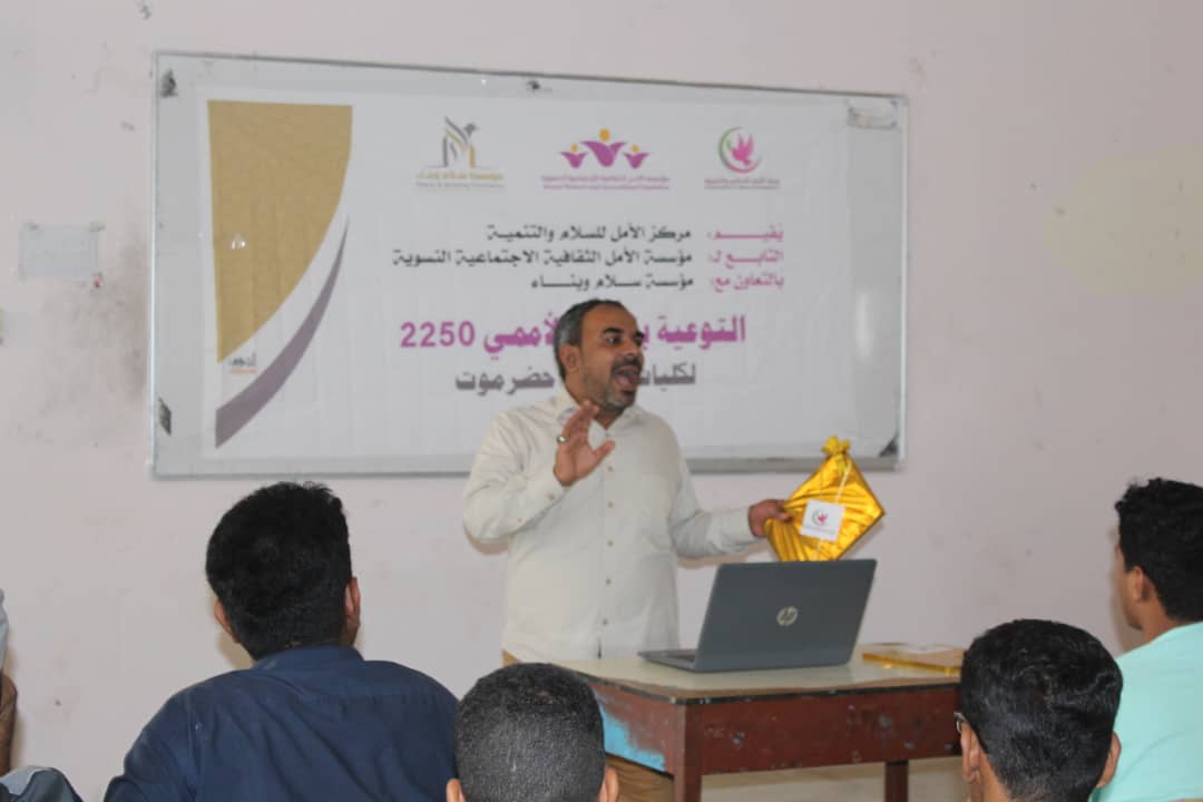 الرئيسية » News » مركز الامل للسلام والتنمية ومؤسسة سلام وبناء تنظم توعية بالقرار الاممي 2250 الخاص بالشباب في كلية العلوم الإدارية