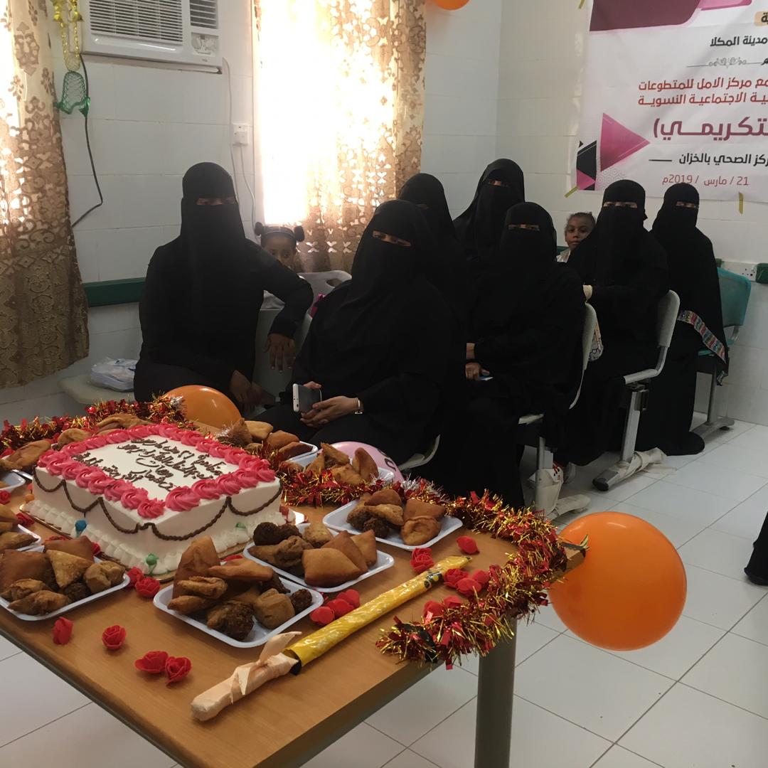 ضمن انشطة المركز و بمناسبة 21 من مارس (*اليوم العالمي للام) تحت رعايه مكتب الصحه مديريه مدينه المكلا مركز الامل للمتطوعات بالشراكة مع مركز الخزان الصحي ينظم الحفل تكريمي للامهات العاملات في مركز الخزان الصحي صباح يوم الاحد الموافق 24 مارس 2019 م .