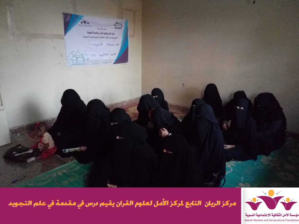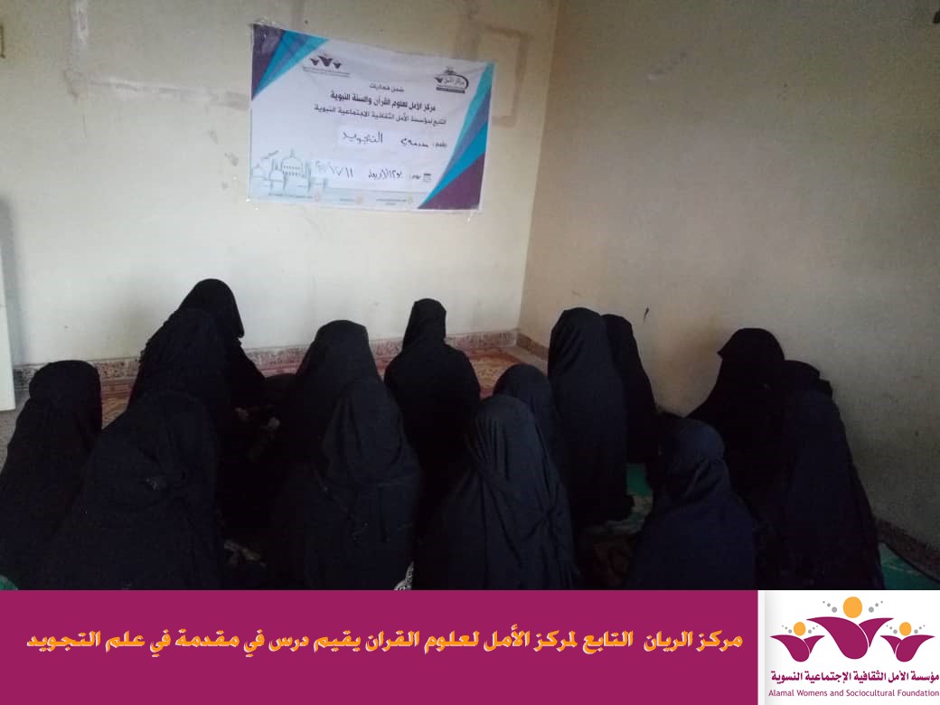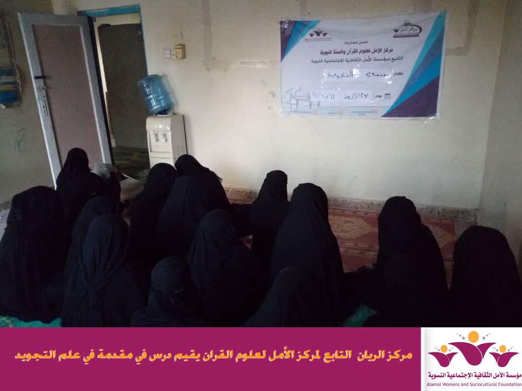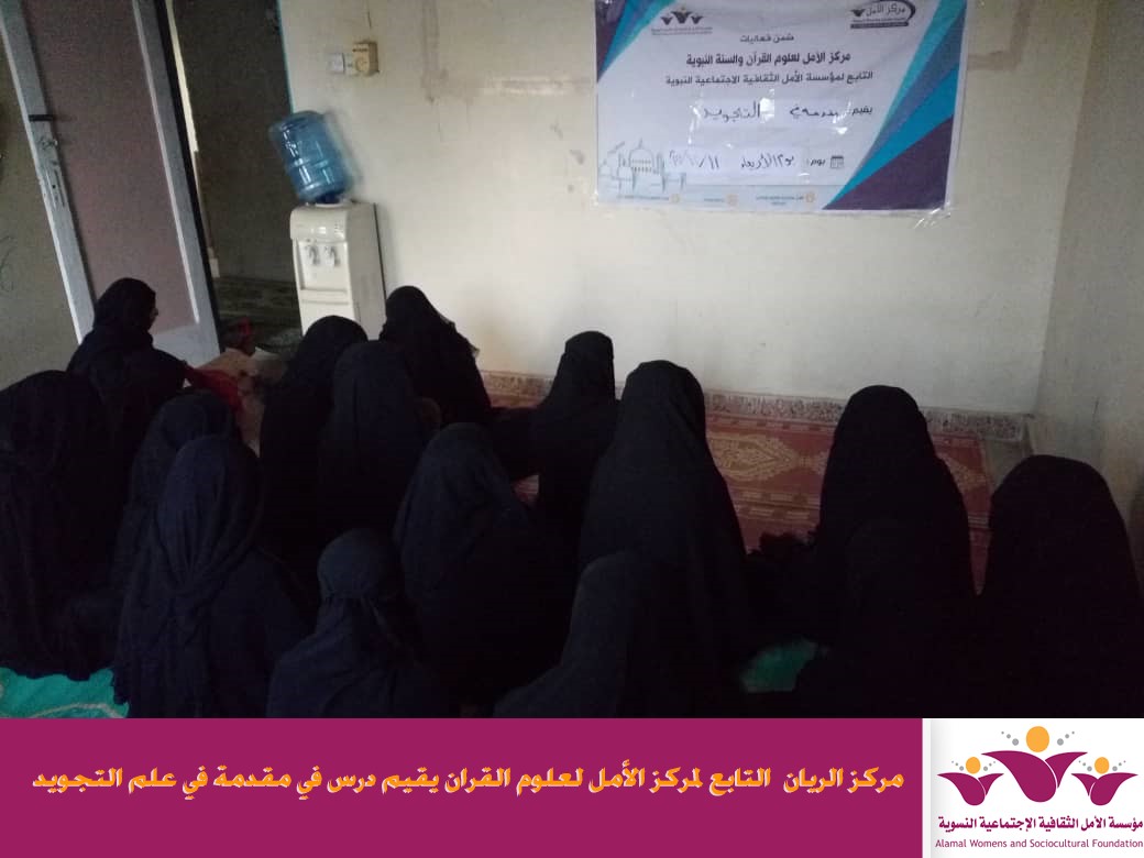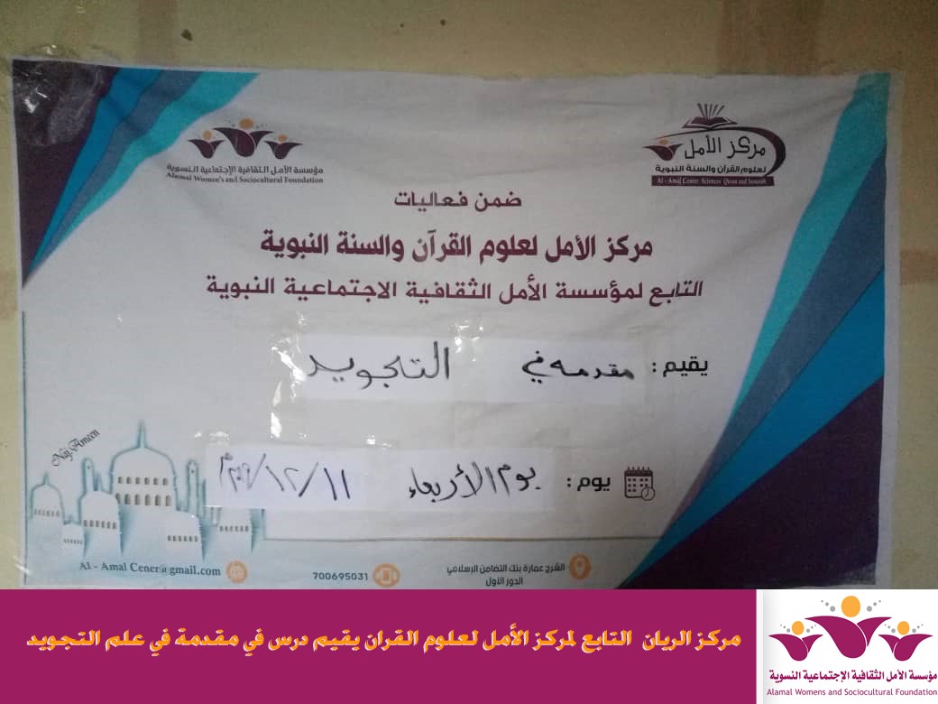 اقام مركز الريان احد افرع مركز الأمل لعلوم القران التابع لمؤسسة الأمل الثقافية الاجتماعية النسوية مقدمة في علم التجويد وذلك يوم الاربعاء الموافق 11/12/2019م