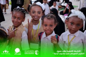 دشّن مركز الملك سلمان للإغاثة والأعمال الإنسانية ، الأنشطة اللاصفية لطلاب فصول التعليم التعويضي (التعليم الوقائي) ضمن مشروع “بداية” المنفذ عبر الشريك المحلي مؤسسة الأمل الثقافية الاجتماعية النسوية، والذي تستفيد منه 25 أسرة من النساء المفرج عنهن وأطفالهن في ساحل حضرموت.