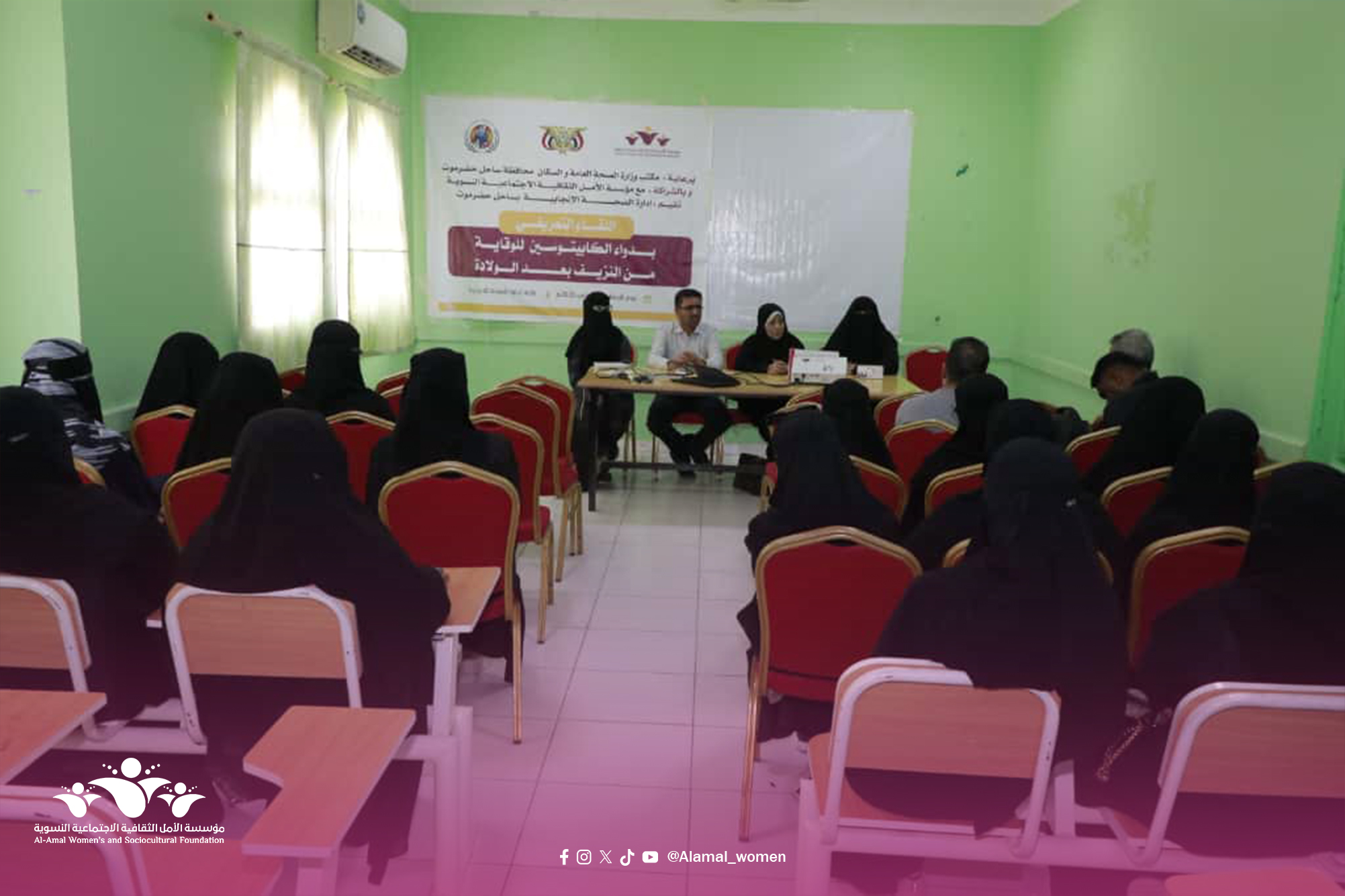 مكتب الصحة ومؤسسة الأمل النسوية يدشّنان اللقاء التعريفي بدواء الكاربيتوسين للوقاية من النزيف ما بعد الولادة بالمكلا