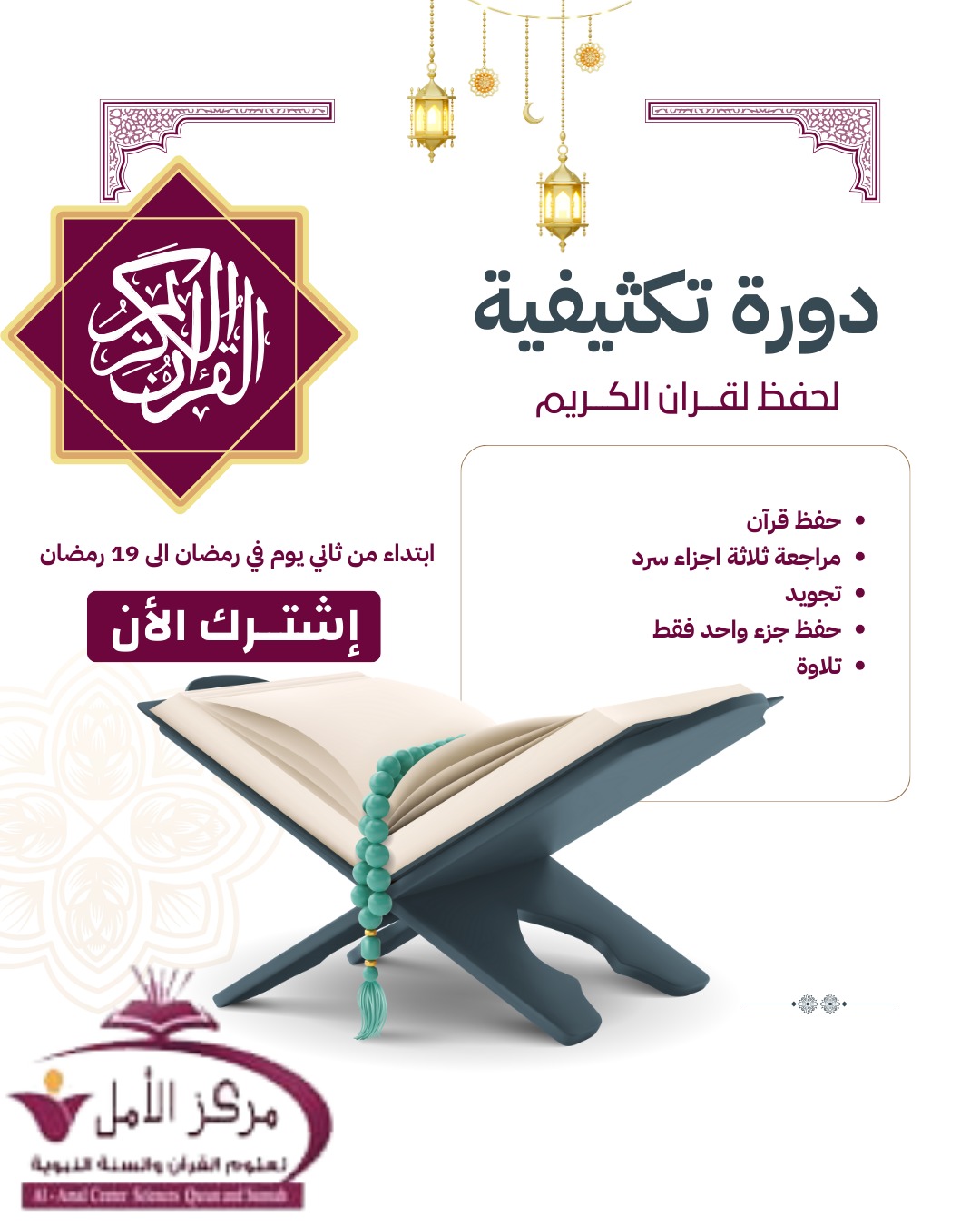 يقيم مركز الأمل لتعليم القرآن والدراسات الشرعية دورة تكتيفية لحفظ القران الكريم